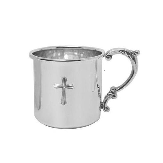 Salisbury The simple, yet elegant design of Salisbury's sterling silver baby cup with scroll handle gives the traditional baby cup a more modern twist. The added cross makes this cup the perfect christening or baptism gift!...$ 410.00 -
