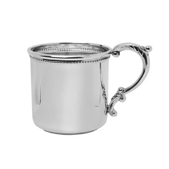Scroll Handle Baby Cup with Beading in Sterling Silver