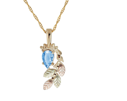 Black Hills Gold by TRJ This beautiful 10k gold pendant features an blue topaz stone. It features classic Black Hills Gold styling. Add a 10K Gold Fine Necklace for $60 Add a 14K Gold Fine Necklace...From $ 246.00 -