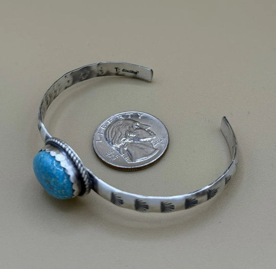 Turquoise & Sterling Silver Navajo Cuff Bracelet - Style V