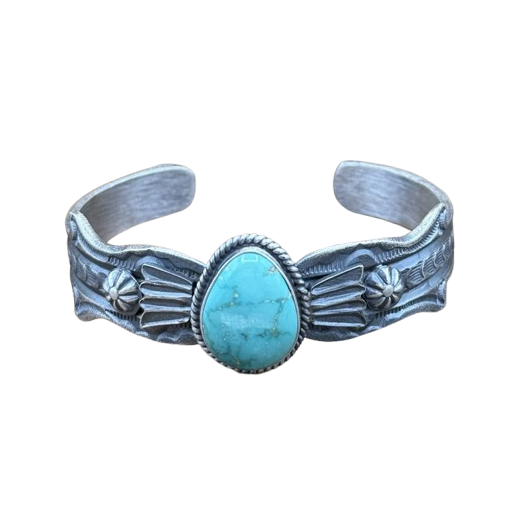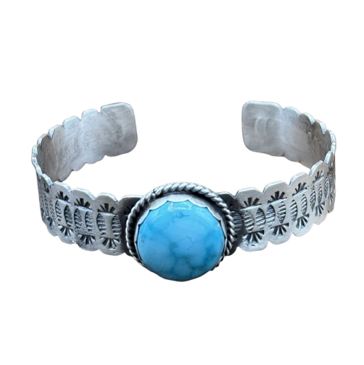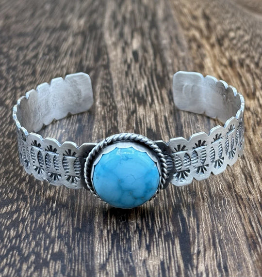 Turquoise & Sterling Silver Navajo Cuff Bracelet - Style VI