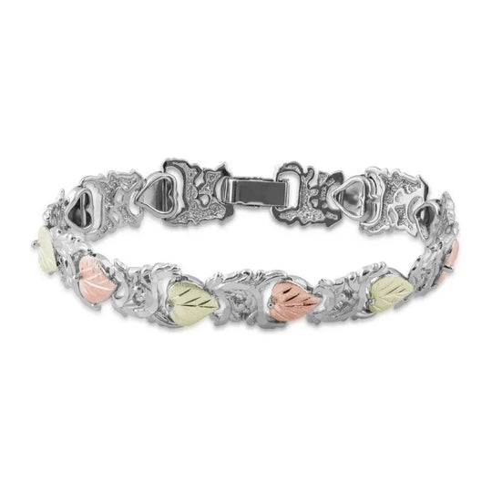 Black Hills Gold by TRJ This beautiful sterling silver bracelet is adorned by a foliage design. It features classic Black Hills Gold styling. All yellow gold components are 10K solid gold. All white gold items are...$ 438.00 -