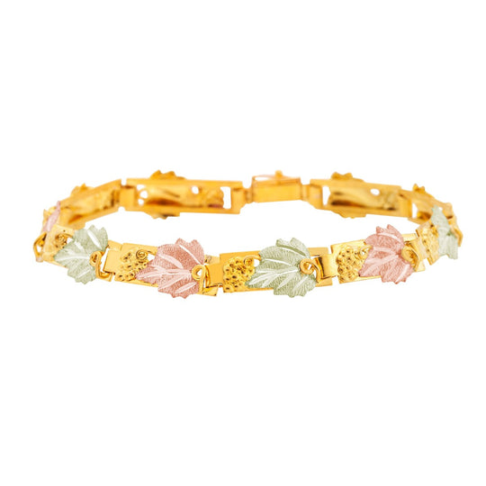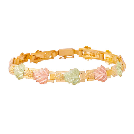 Landstrom's Black Hills Gold A gorgeous bracelet with colorful foliage accents. It features classic Black Hills Gold styling. All yellow gold components are 10K solid gold. All white gold items are custom, non-refundable & take 4 weeks...$ 1,676.00