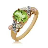Mt Rushmore Black Hills Gold An elegant peridot and natural diamond design adorns this ladies ring. It features classic Black Hills Gold styling. All yellow gold components are 10K solid gold. All white gold items are...$ 436.00 -