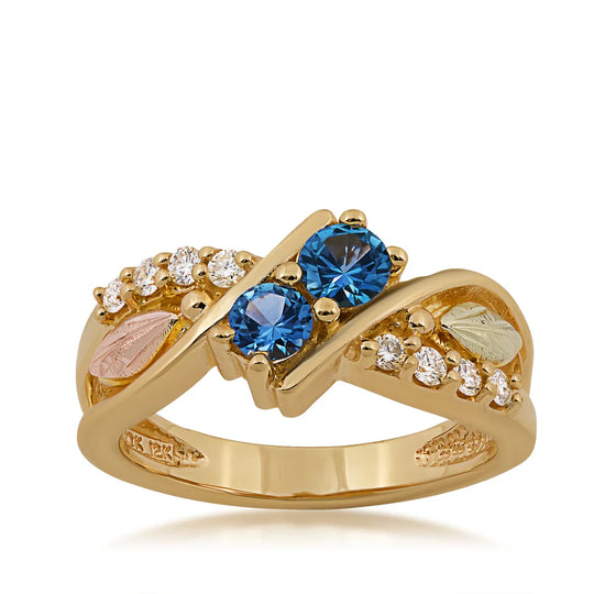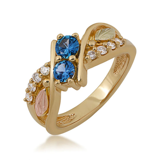 Diamond Foliage - Yogo Sapphire Black Hills Gold Ladies Ring