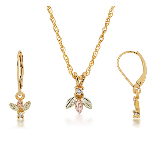 Ritzy Diamond - Black Hills Gold Earrings & Pendant Set