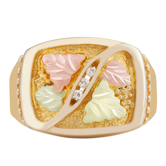 Landstrom's Black Hills Gold A stately classic foliage and natural diamond design adorns this gold mens' ring. It features classic Black Hills Gold styling. All yellow gold components are 10K solid gold. All white gold items...$ 1,614.00 -