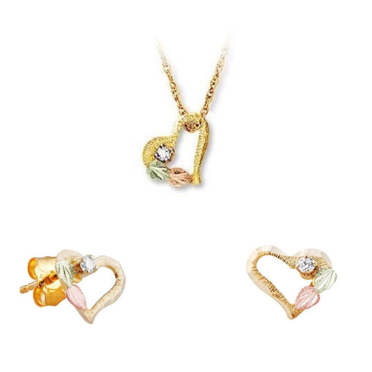 Diamond Hearts - Black Hills Gold Earrings & Pendant Set