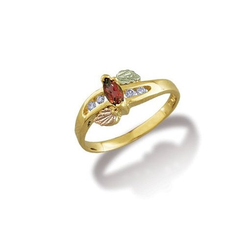 Landstrom's Black Hills Gold An elegant genuine ruby and natural diamond design adorns this ladies ring. It features classic Black Hills Gold styling. All yellow gold components are 10K solid gold. All white gold items are...$ 713.00 -