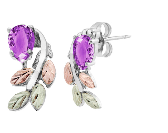 Black Hills Gold by TRJ These beautiful sterling silver earrings feature genuine amethyst stones. It features classic Black Hills Gold styling. All yellow gold components are 10K solid gold. All white gold items are custom, non-refundable...$ 167.00 -