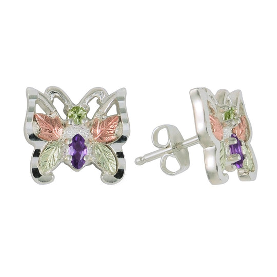 Butterfly Amethyst - Sterling Silver Black Hills Gold Earrings