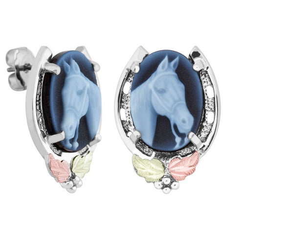 Horse Cameo - Sterling Silver Black Hills Gold Earrings