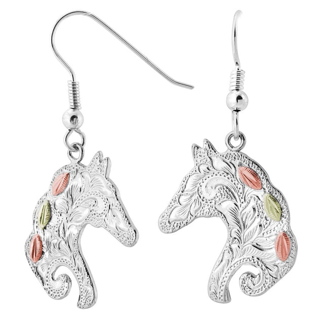 Intricate Horse - Sterling Silver Black Hills Gold Earrings