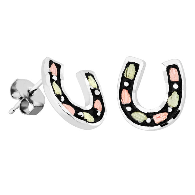 Horseshoe - Sterling Silver Black Hills Gold Earrings