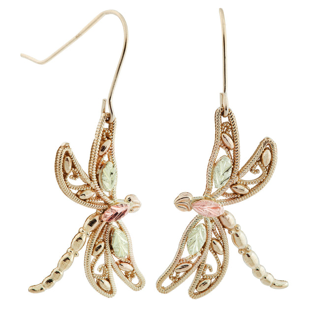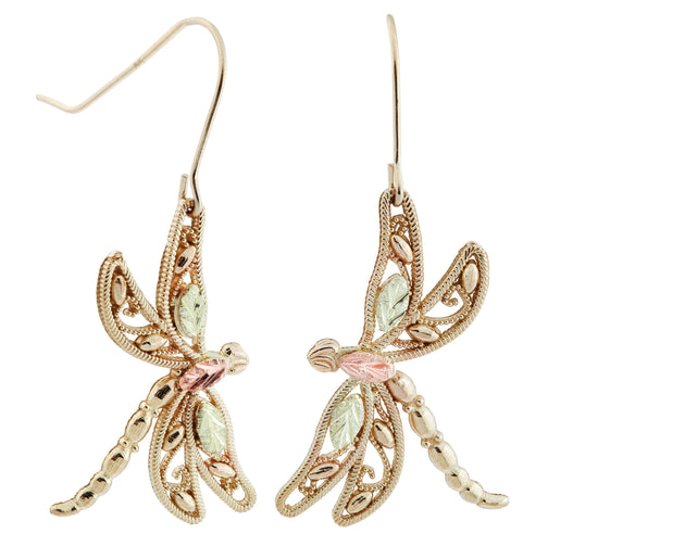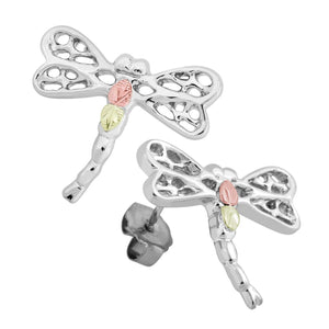 Dragonfly - Sterling Silver Black Hills Gold Earrings
