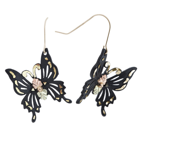 Powder Coated Butterfly - Black Hills Gold Earrings
