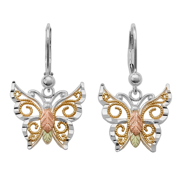 Intricate Butterfly - Sterling Silver Black Hills Gold Earrings