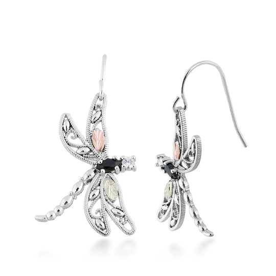 Onyx Dragonfly - Sterling Silver Black Hills Gold Earrings