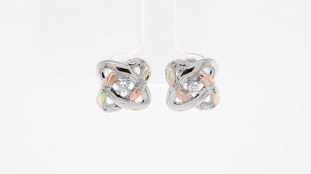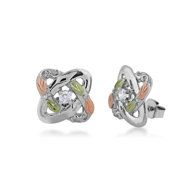 Diamond Knot - Sterling Silver Black Hills Gold Earrings