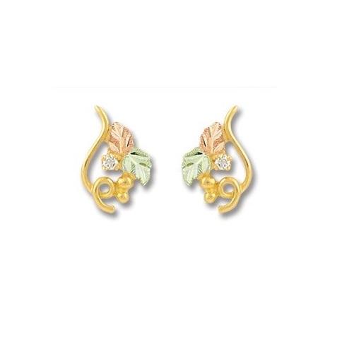 Foliage Diamond - Sterling Silver Black Hills Gold Earrings