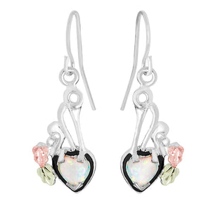 Dangling Opal Heart - Sterling Silver Black Hills Gold Earrings