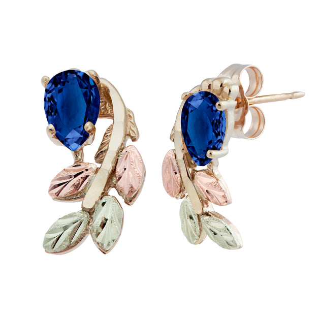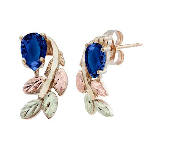 Pear Cut Genuine Sapphire - Black Hills Gold Earrings