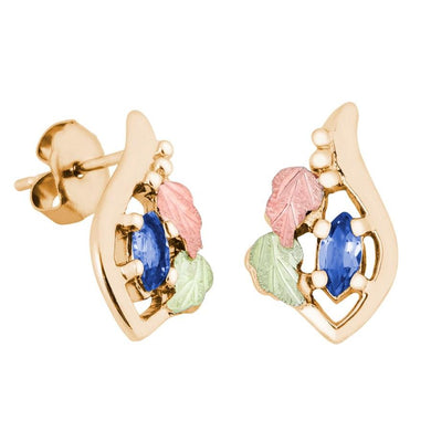 Marquise Genuine Sapphire - Black Hills Gold Earrings