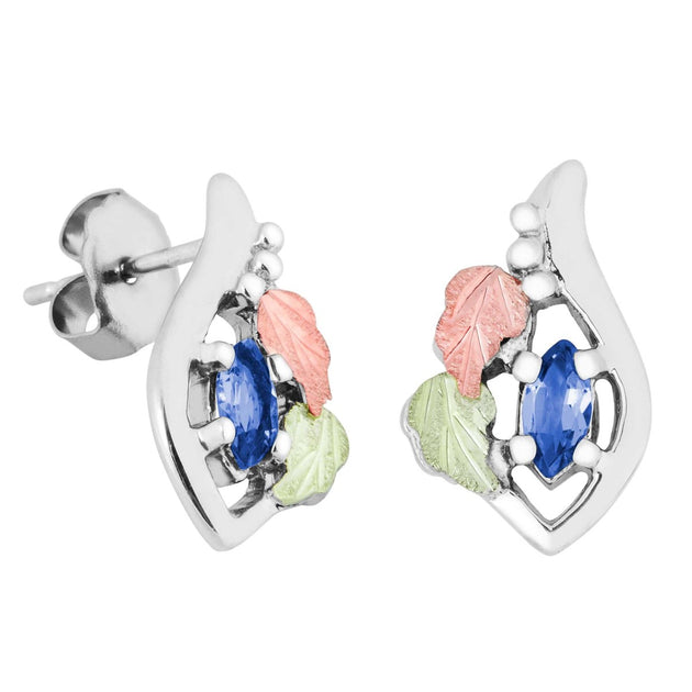 Marquise Genuine Sapphire - Sterling Silver Black Hills Gold Earrings