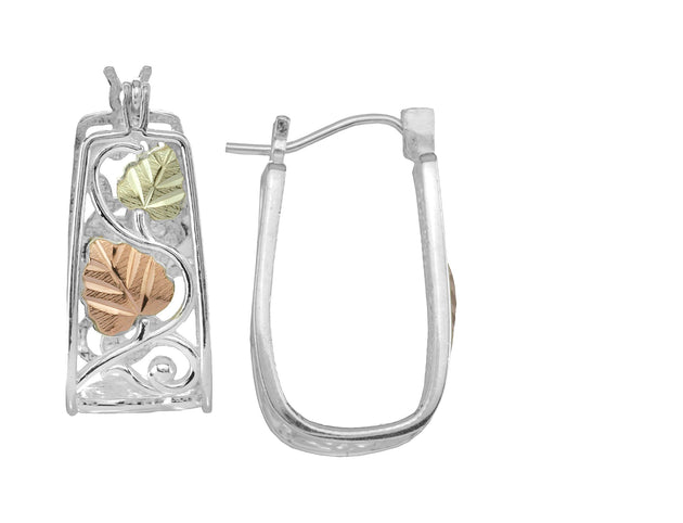 Foliage Rectangle - Sterling Silver Black Hills Gold Earrings