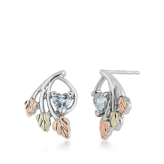 Aquamarine Heart - Sterling Silver Black Hills Gold Earrings