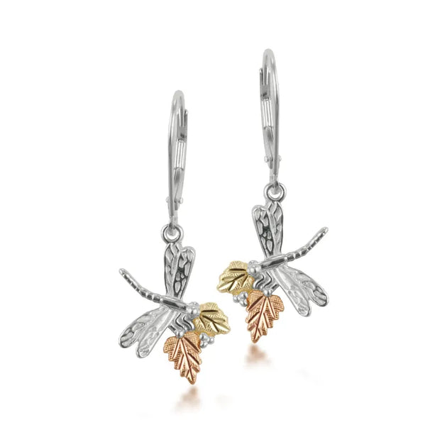Playful Dragonfly - Sterling Silver Black Hills Gold Earrings