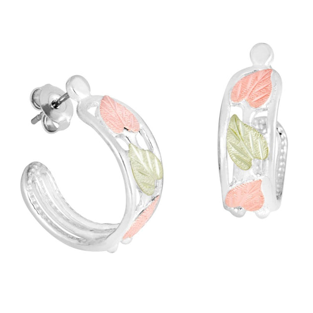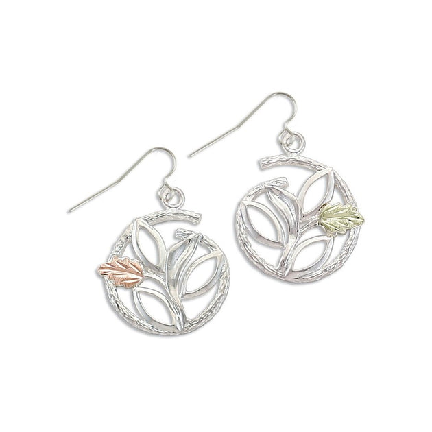 Round Foliage III - Sterling Silver Black Hills Gold Earrings