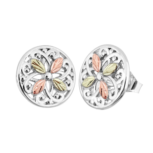 Intricate Circle - Sterling Silver Black Hills Gold Earrings