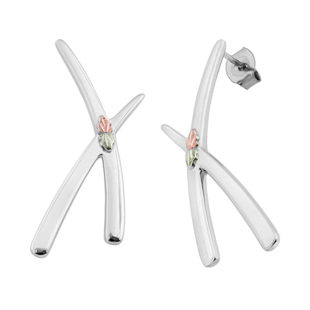 Foliage Cross - Sterling Silver Black Hills Gold Earrings
