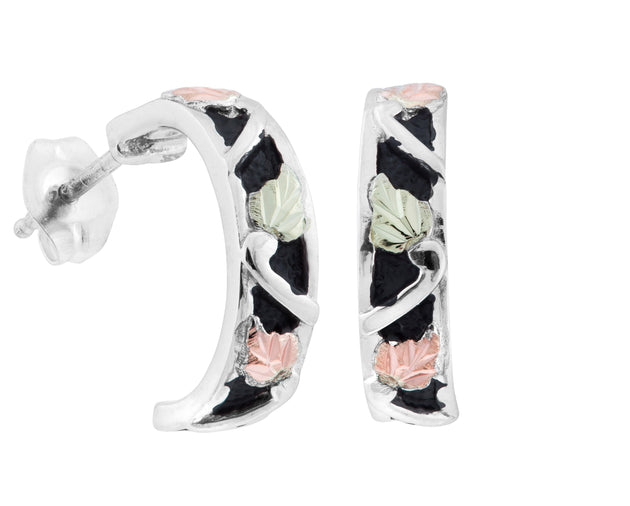 Half Hoop Antiqued II - Sterling Silver Black Hills Gold Earrings