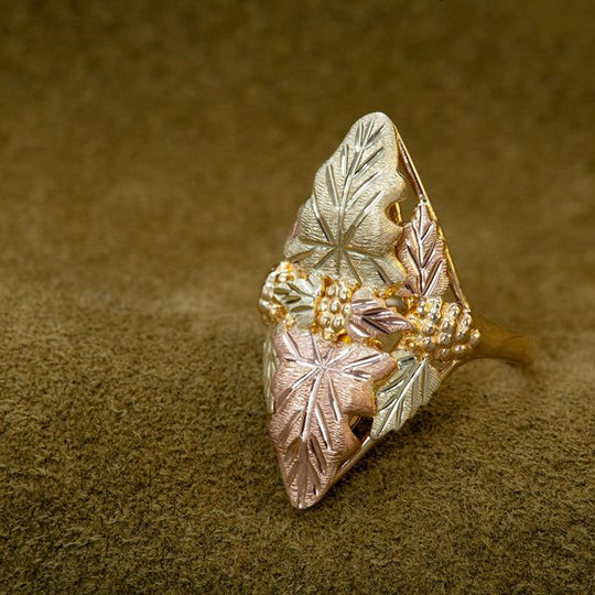 Pointed Cluster of Leaves - Black Hills Gold Ladies Ring