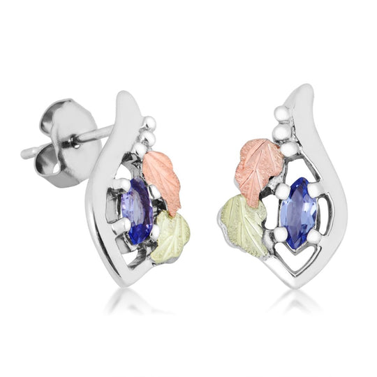 Landstrom's Black Hills Gold These beautiful sterling silver earrings feature a genuine tanzanite design. It features classic Black Hills Gold styling. All yellow gold components are 10K solid gold. All white gold items are custom, non-refundable...$ 289.00 -