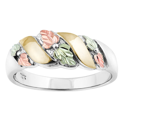 Black Hills Gold by TRJ An elegant foliage and gold band design adorns this stylish sterling silver ladies ring. It features classic Black Hills Gold styling. All yellow gold components are 10K solid gold. All white...$ 190.00