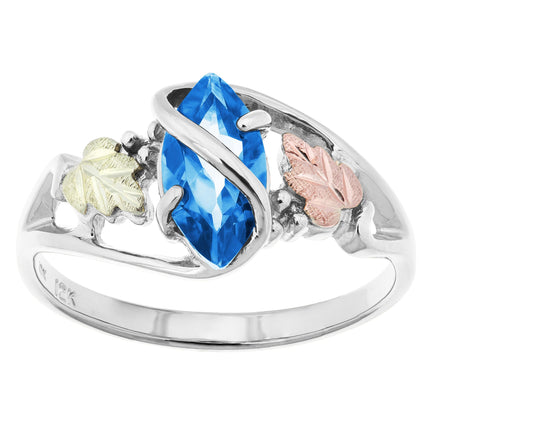 Black Hills Gold by TRJ A brilliant blue topaz adorns this stylish sterling silver ladies ring. It features classic Black Hills Gold styling. All yellow gold components are 10K solid gold. All white gold items are...$ 120.00 -