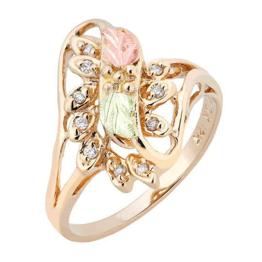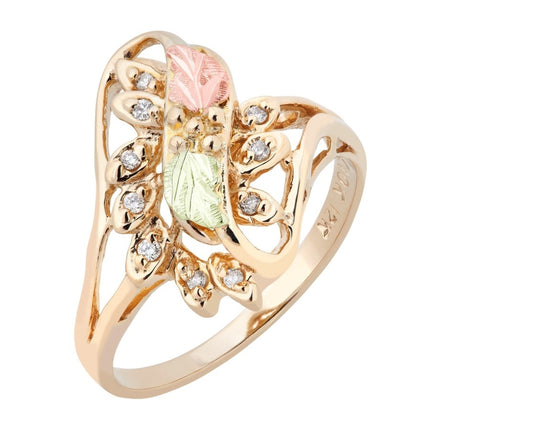 Landstrom's Black Hills Gold An elegant natural diamond design adorns this ladies ring. It features classic Black Hills Gold styling. All yellow gold components are 10K solid gold. All white gold items are custom, non-refundable &...$ 538.00 -