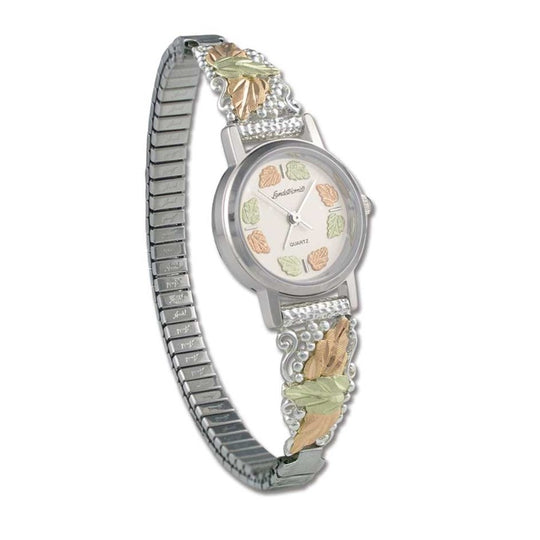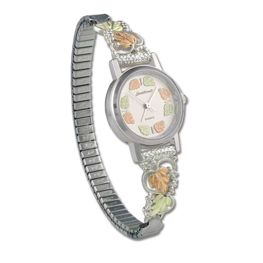 Elegant Foliage II - Sterling Silver Black Hills Gold Ladies Watch
