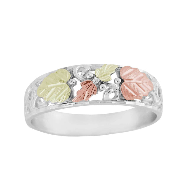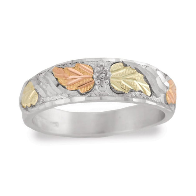 Inlaid Foliage - Sterling Silver Black Hills Gold Mens Ring