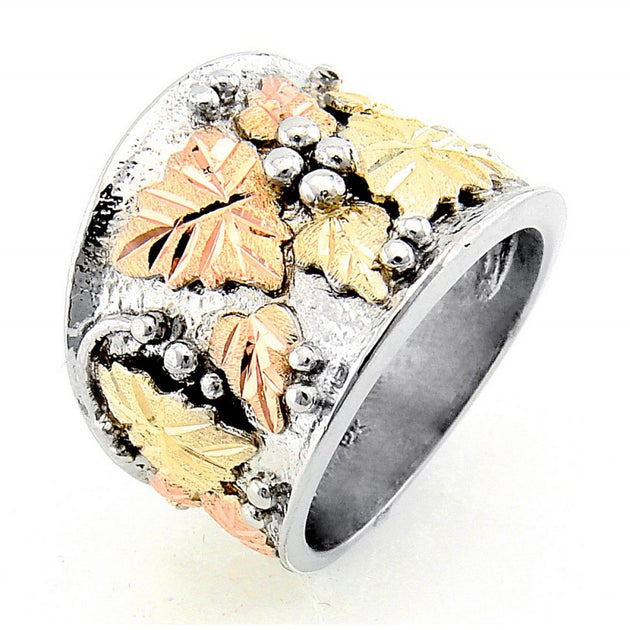 Wide Foliage - Sterling Silver Black Hills Gold Mens Ring