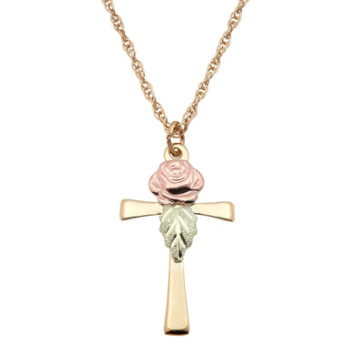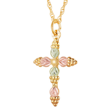 Leafy Diamond Cross - Black Hills Gold Pendant