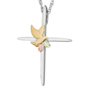 Antiqued Dove Cross - Sterling Silver Black Hills Gold Pendant
