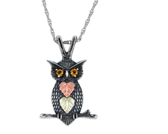 Black Hills Gold by TRJ This beautiful sterling silver pendant is adorned by an oxidized owl design. It features classic Black Hills Gold styling. All yellow gold components are 10K solid gold. All white gold items...$ 112.00 -