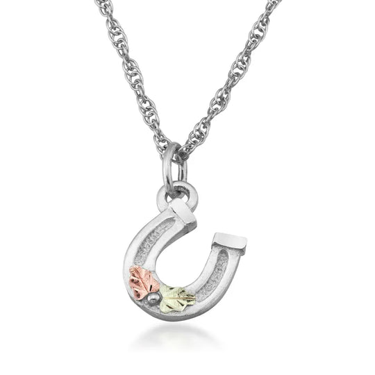 Black Hills Gold by TRJ This beautiful sterling silver pendant is adorned by a horseshoe design. It features classic Black Hills Gold styling. All yellow gold components are 10K solid gold. All white gold items are...$ 95.00 -