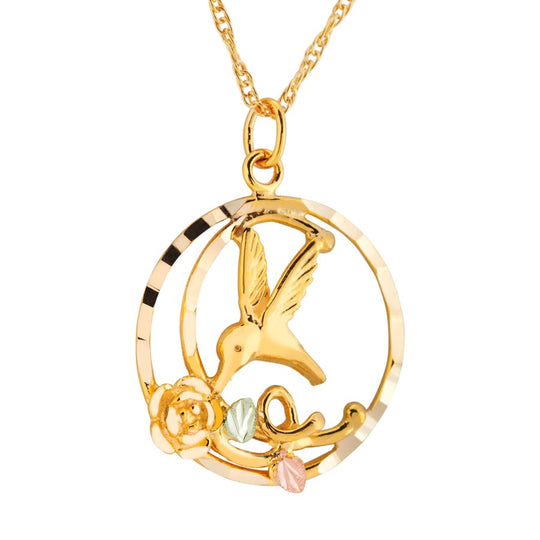 Black Hills Gold by TRJ This pendant features an elegant hummingbird design. It features classic Black Hills Gold styling. All yellow gold components are 10K solid gold. All white gold items are custom, non-refundable & take...$ 188.00 -