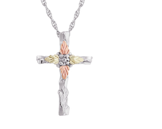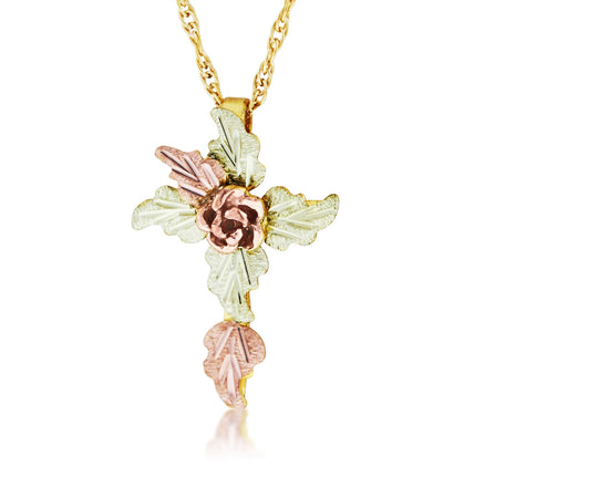 Mt Rushmore Black Hills Gold This unique cross pendant is composed of 10k gold and accented with 12kt gold rose and green leaves. It features classic Black Hills Gold styling. Add a 10K Gold Fine Necklace...From $ 184.00 -