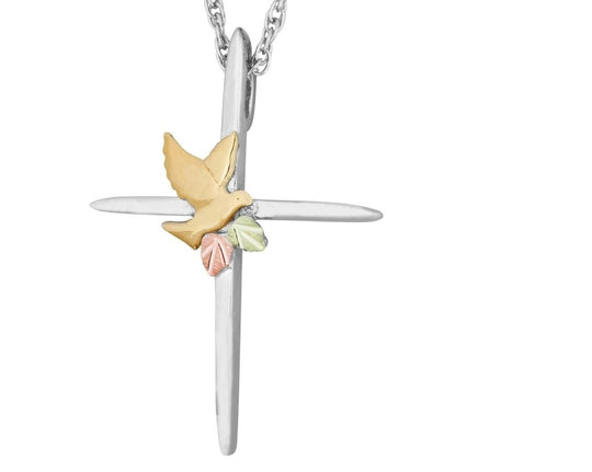 Landstrom's Black Hills Gold This beautiful sterling silver pendant is adorned by an elegant dove cross design. It features classic Black Hills Gold styling. All yellow gold components are 10K solid gold. All white gold items...$ 108.00 -